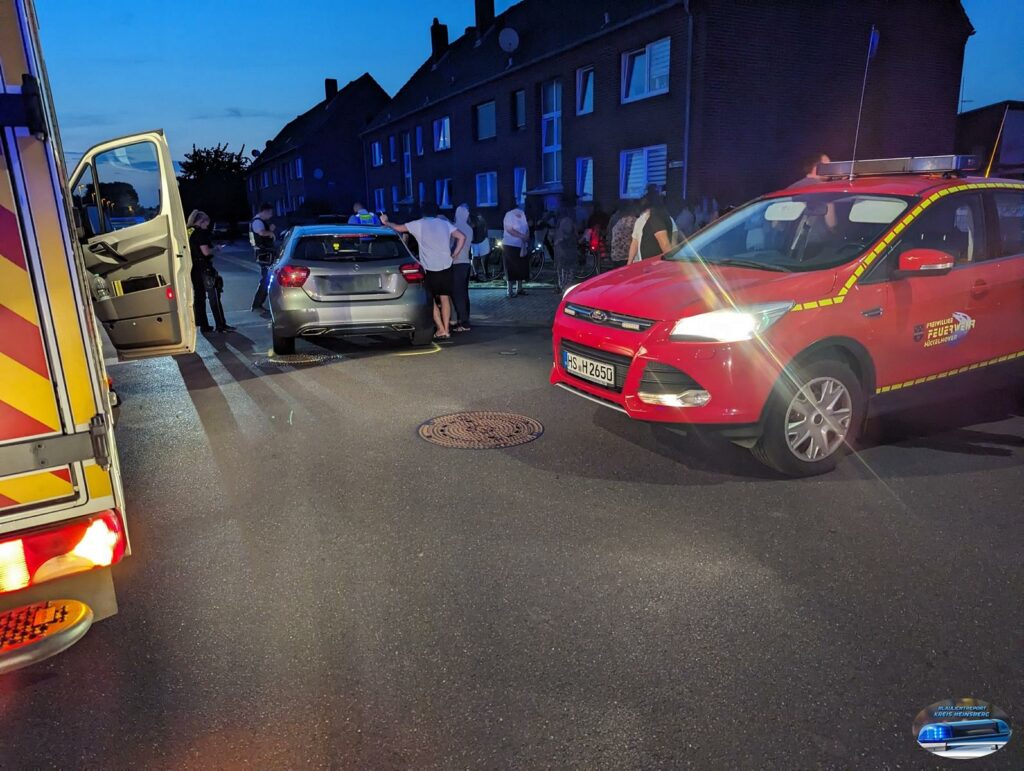 Einsatzbericht: Die Feuerwehr wurde am späten Abend zu einem Verkehrsunfall mit einer eingeklemmten Person alarmiert. Laut erster Meldung sollte ein PKW mit einem Motorroller im Kreuzungsbereich kollidiert und der Rollerfahrer eingeklemmt sein.