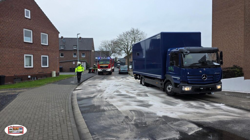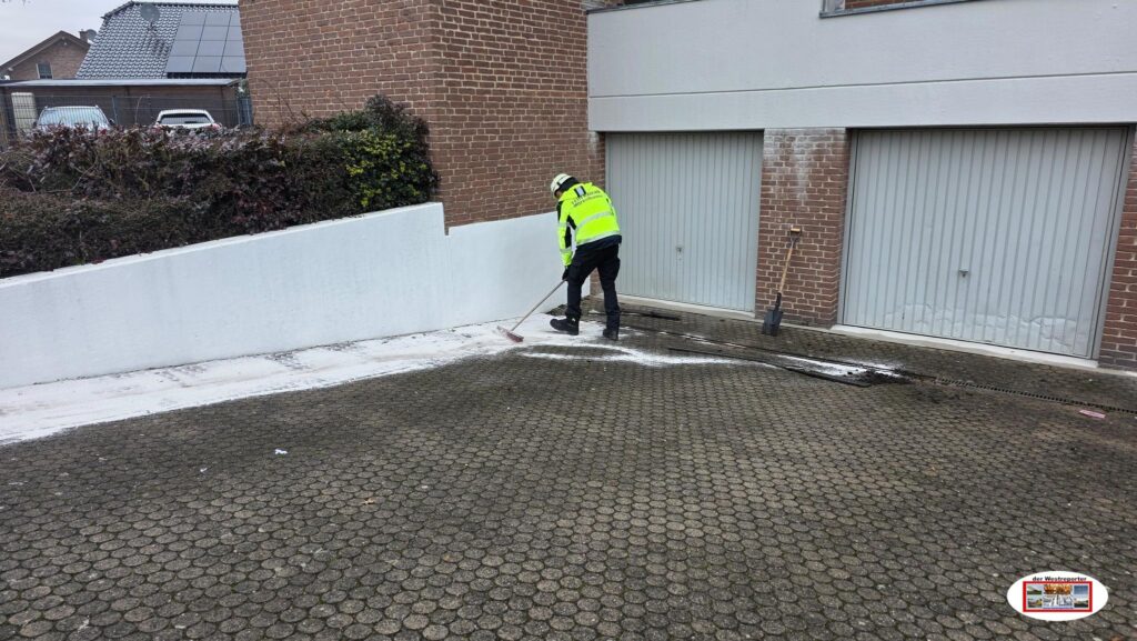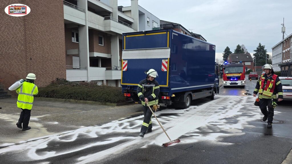Die Einsatzkräfte sicherten den Gefahrenbereich und streuten den freigesetzten Kraftstoff mit Bindemittel ab. Aufgrund der ausgelaufenen Menge an Kraftstoff wurde die untere Wasserbehörde des Kreises Heinsberg hinzugezogen.