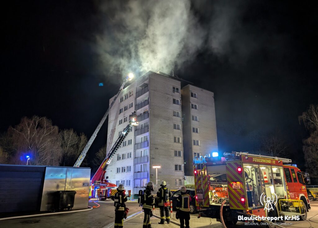 Am Sonntagabend den 01.03.2026 wurde die Feuerwehr Hückelhoven gegen 21:30 Uhr zu einem Dachstuhlbrand mit Menschenleben in Gefahr alarmiert. Bei der Leitstelle für Feuerschutz und Rettungsdienst wurde über Notruf von mehreren Anrufern ein Brand im Dachbereich eines Mehrfamilienhauses gemeldet.