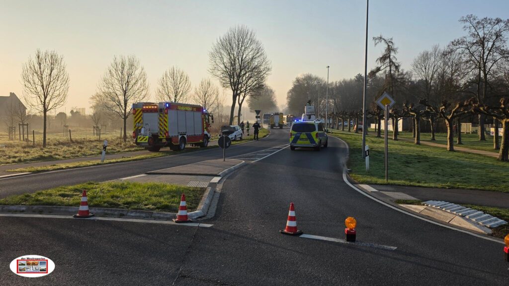 Einsatzbericht: Die Feuerwehr wurde zu einem Verkehrsunfall alarmiert. Ausgangs eines Kreisverkehrs war aus ungeklärten Gründen ein PKW-Fahrer von der Fahrbahn abgekommen und mit einer Straßenlaterne kollidiert.