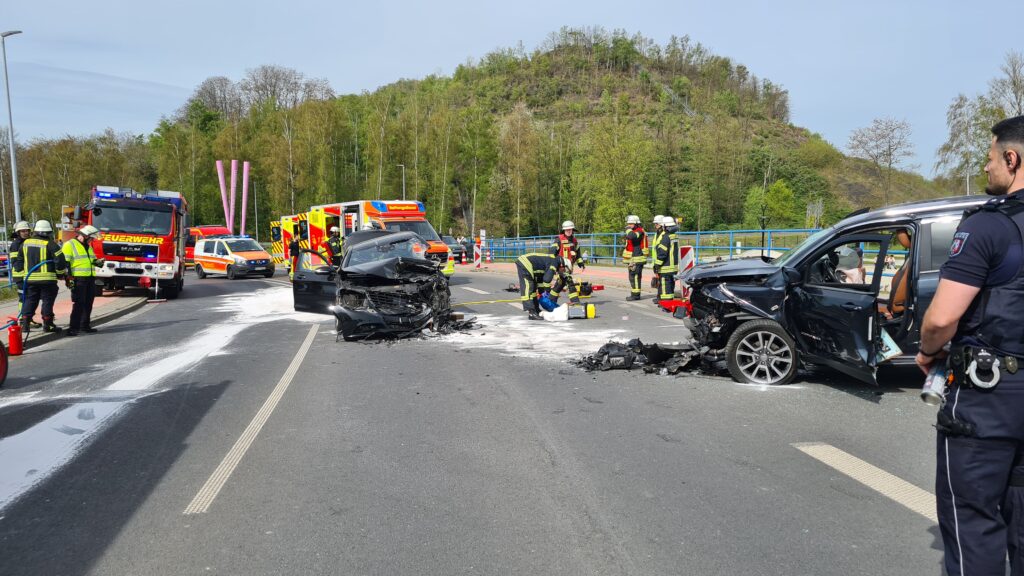 Die Einsatzkräfte machten sich ein Bild von der Lage und stellten eine Person fest, die sich noch in einem der verunfallten Fahrzeuge befand und dieses aufgrund der Verformung der Karosserie nicht verlassen konnte. Die zweite Person aus dem anderen Fahrzeug wurde bereits durch Ersthelfer sowie vom Rettungsdienst am Straßenrand versorgt.