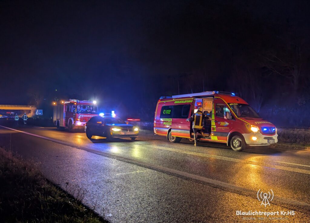 Durch die Feuerwehr wurde die Gefahrenstelle abgesichert, ausgeleuchtet und auslaufende Betriebsmittel abgestreut.