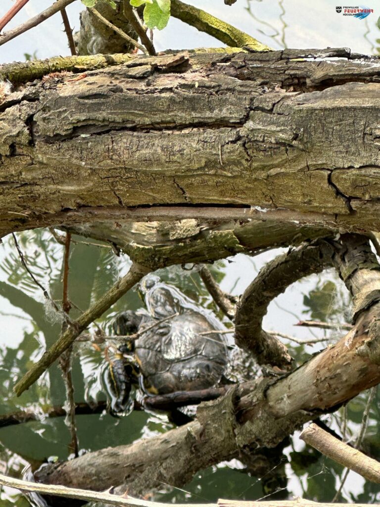 Einsatzbericht: Die Feuerwehr wurde zu einem „Kleintier in Not“ alarmiert. Laut Anrufer hatte dieser eine verletzte Schmuckschildkröte aufgefunden, die sich in einer Schnur verfangen und vermutlich einen Angelhaken verschluckt hatte.