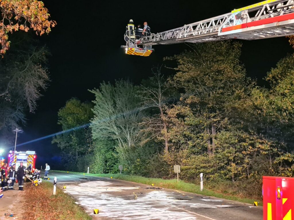 Mit einsetzender Dunkelheit sowie zur Unfallaufnahme durch die Polizei musste die Einsatzstelle großflächig ausgeleuchtet werden.