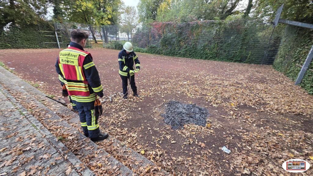 Einsatzbericht: Die Feuerwehr wurde zu einem Kleinbrand alarmiert. Durch einen Passanten wurde ein brennender Laubhaufen auf einer Sportanlage gemeldet.