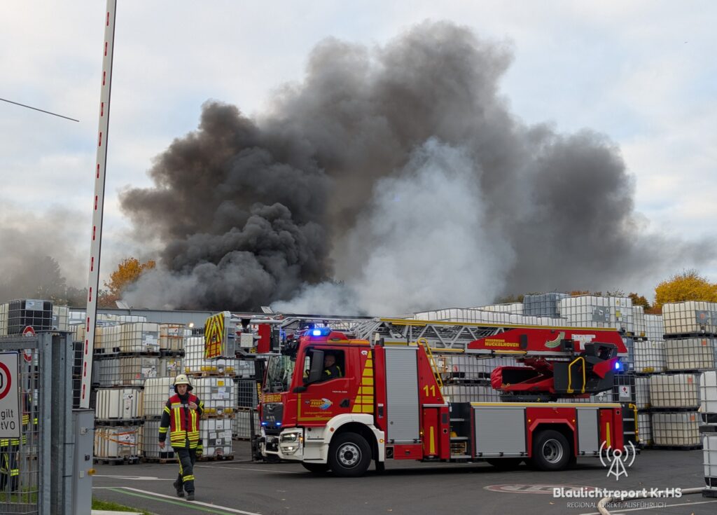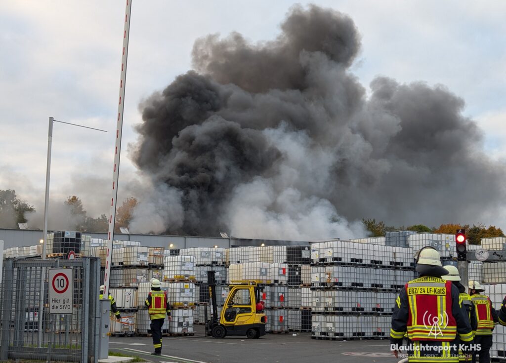 Einsatzbericht: Die Feuerwehr Hückelhoven wurde am frühen Morgen zu einem Industriebrand nach Erkelenz alarmiert. Im Industriegebiet von Erkelenz war auf auf dem Gelände einer Firma für Kunststoffbehältnisse eine Maschine sowie eine angrenzende Halle in Brand geraten.