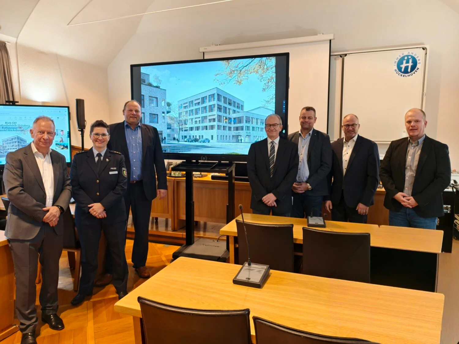 Die Kreispolizeibehörde Heinsberg und die Stadtentwicklung Hückelhoven GmbH & Co. KG freuen sich über den Bau einer neuen, modernen Polizeiwache in der Hückelhovener Innenstadt im Rahmen des geplanten Projekts „Veedel Hückelhoven“. Nach Unterzeichnung des Mietvertrags im März 2025 erfolgte nun die Kick-Off-Veranstaltung unter der Beteilung von Landrat Stephan Pusch, Bürgermeister Bernd Jansen, Vertretern des Landesamtes für zentrale polizeiliche Dienste NRW (LZPD NRW), der Kreispolizeibehörde Heinsberg und der Geschäftsführung der Stadtentwicklungsgesellschaft.
